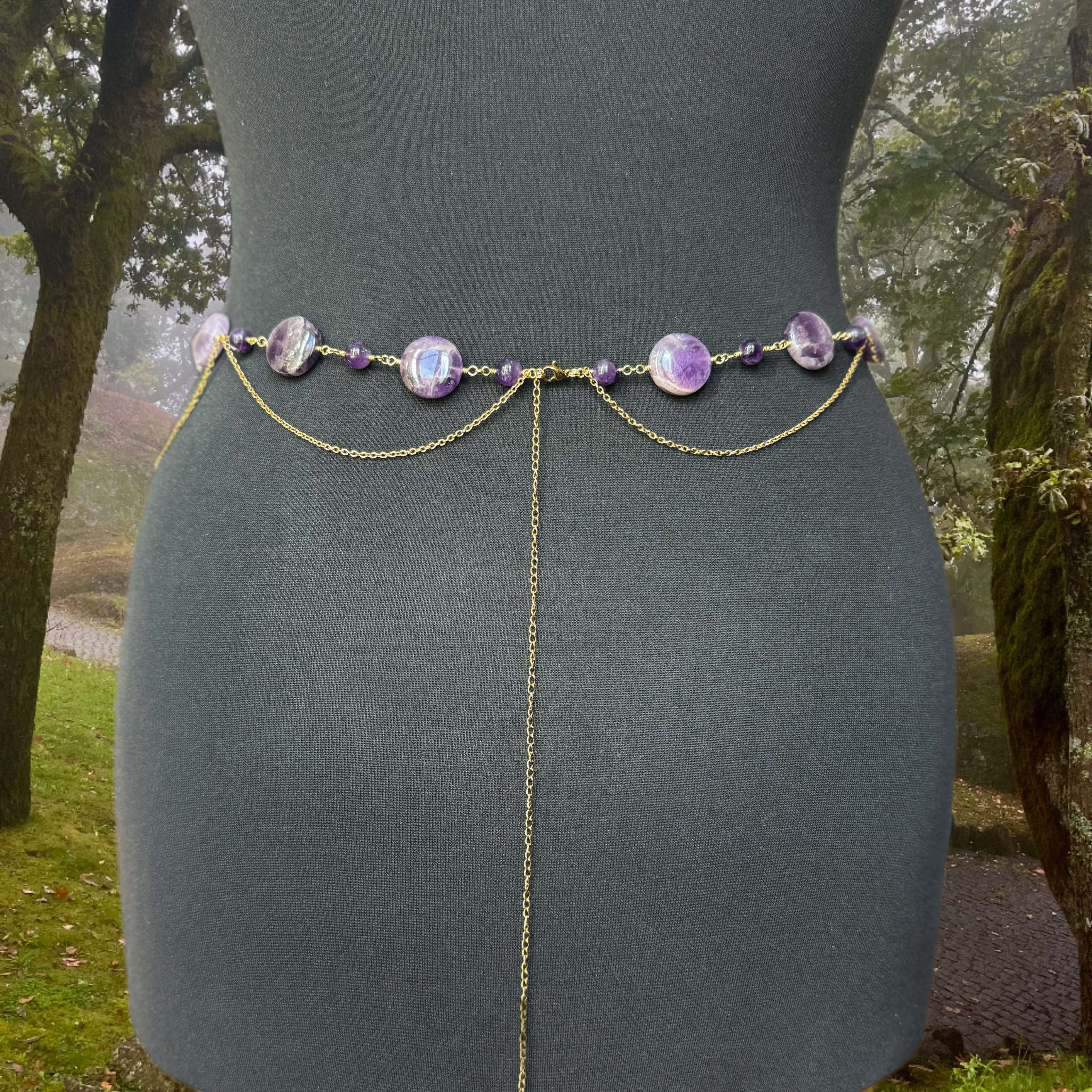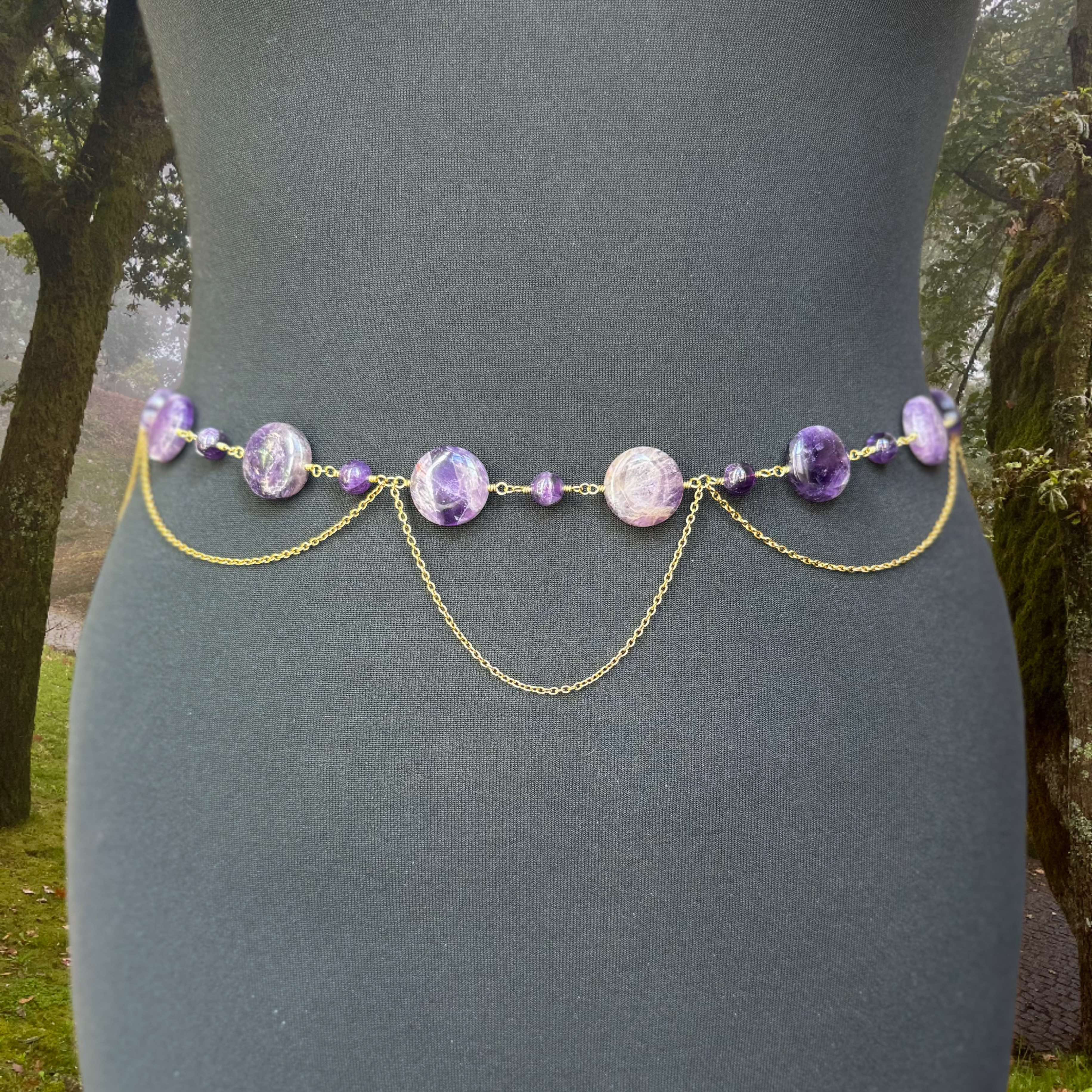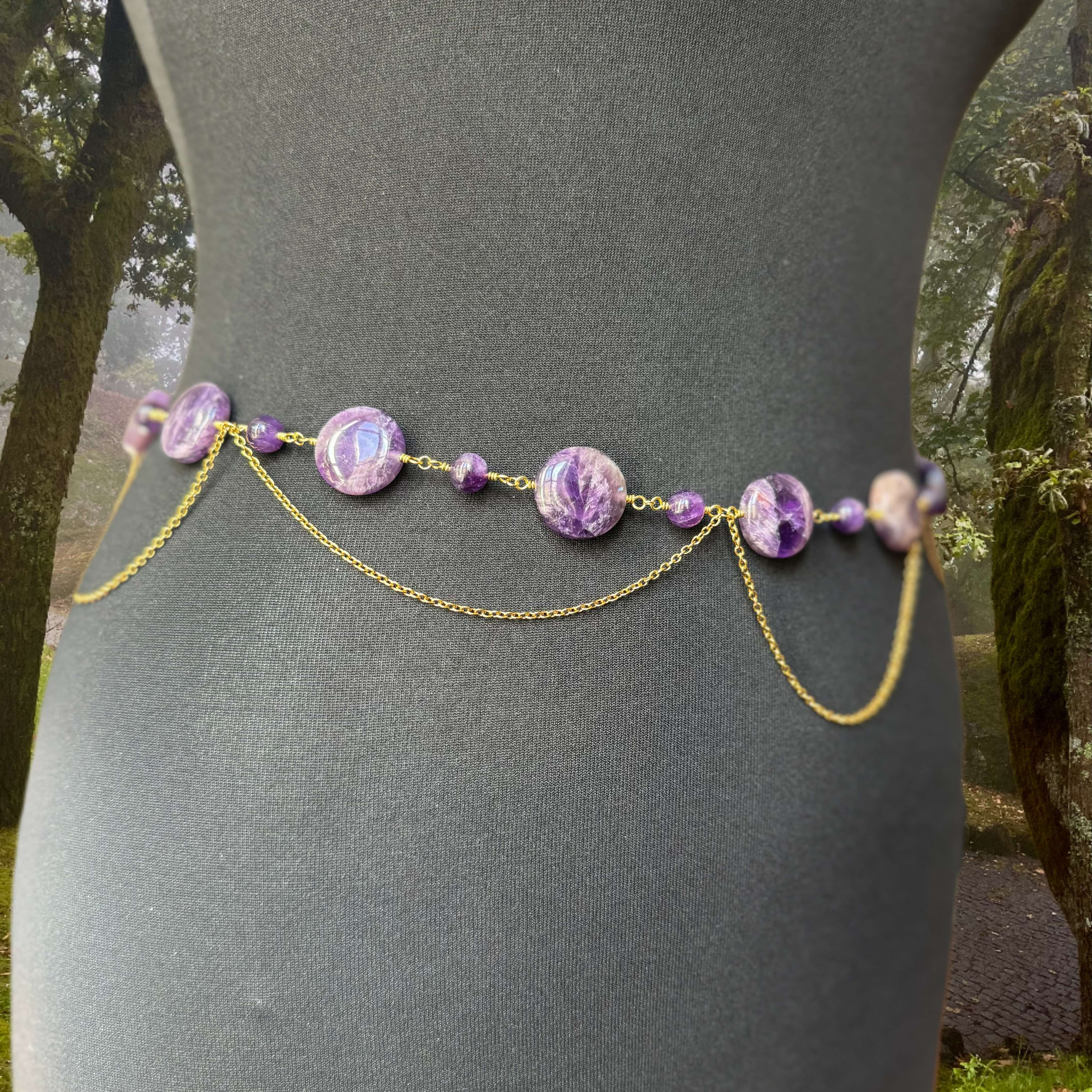 Aelys est une chaîne de taille réalisée à la main. Elle se compose de perles d'améthyste naturelles, montées sur des chaînes en acier inoxydable. Comme toutes les créations Crystalia, il est ajustable grâce à une chaîne d’extension.