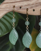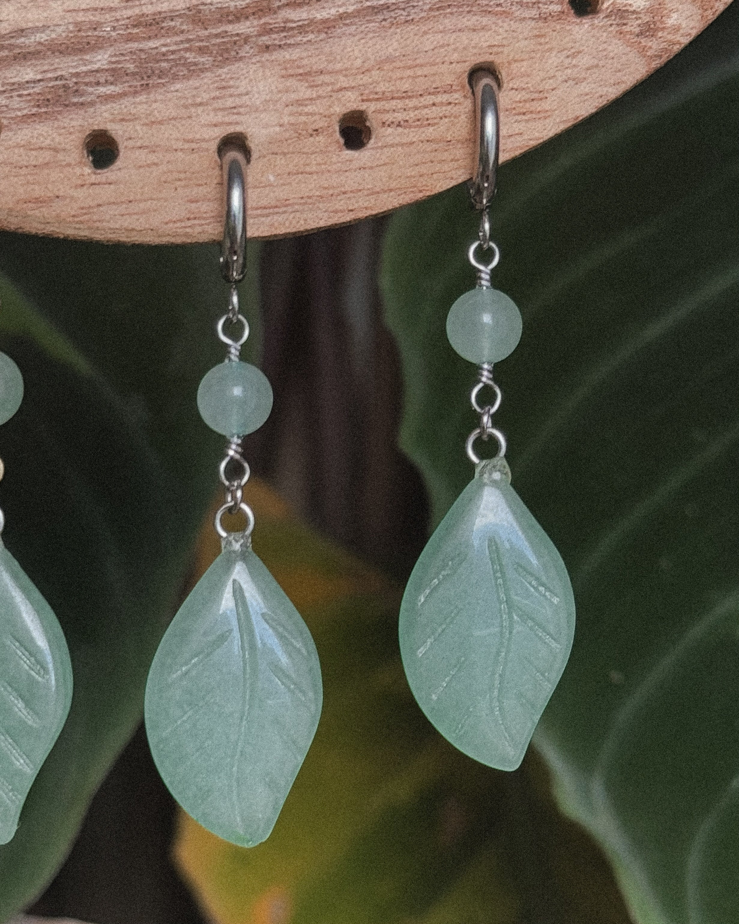Thalïel est une paire de boucles d’oreilles réalisée à la main. Elle se compose de perles en aventurine verte naturelle et de breloques assorties, montées sur des créoles en acier inoxydable.