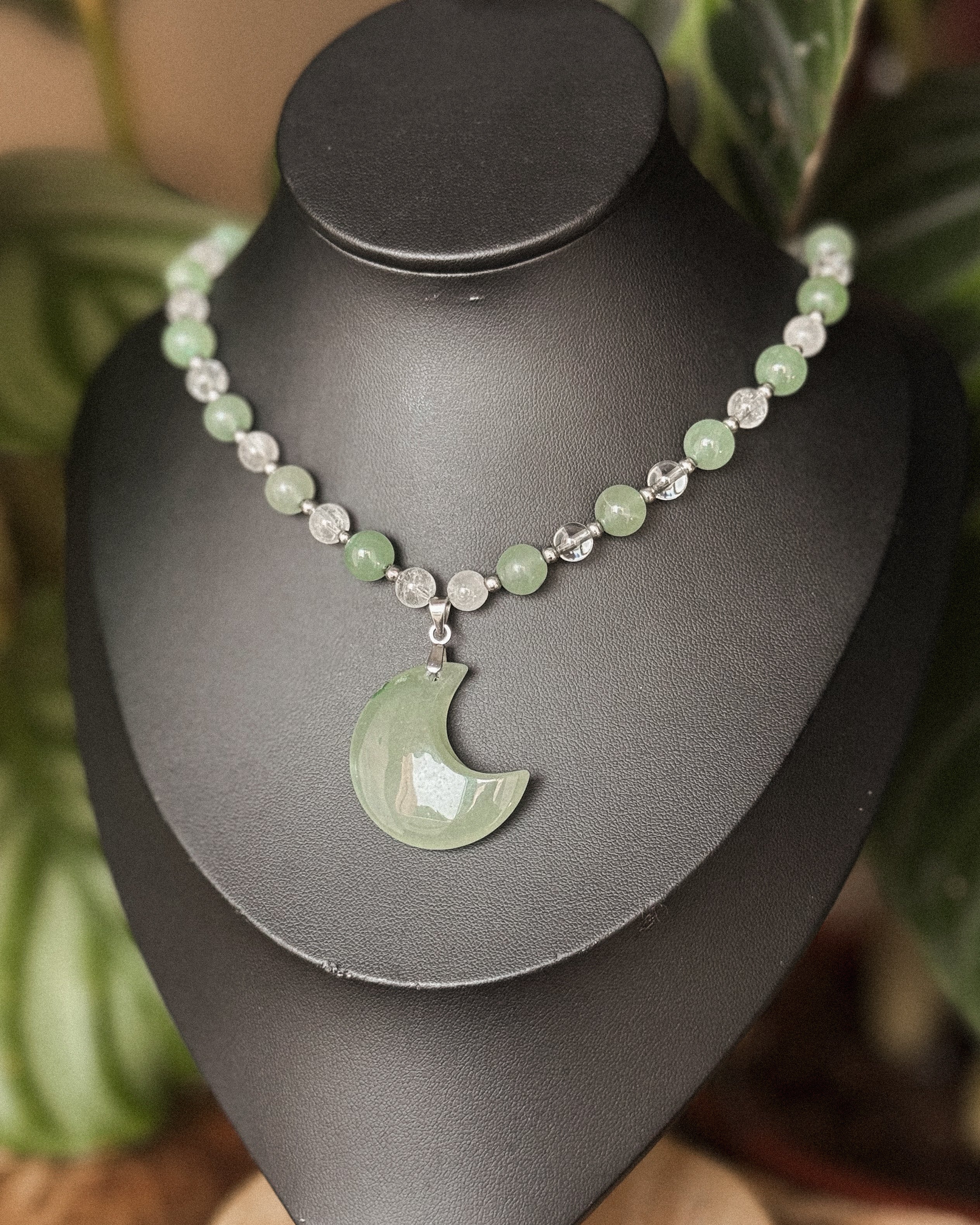 Luna est un collier réalisé à la main. Il se compose de perles en pierre naturelle et d'un pendentif assorti. Comme toutes les créations Crystalia, il est ajustable grâce à une chaîne d’extension.